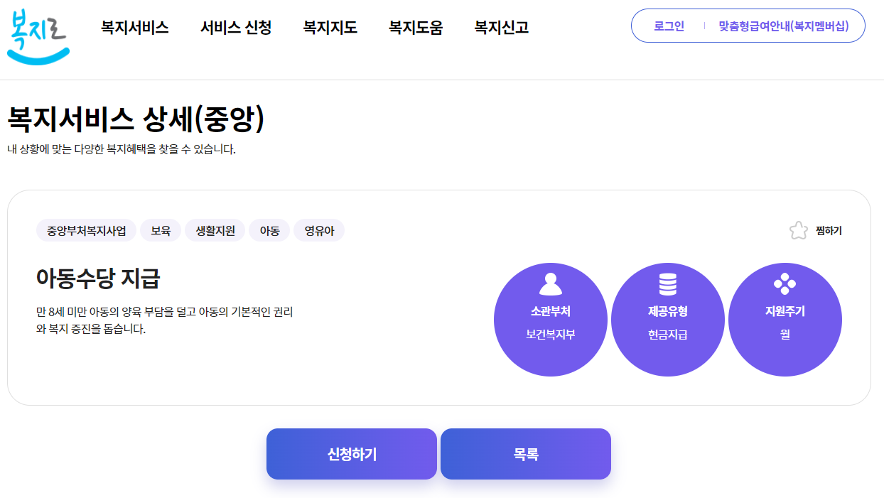- 주민등록번호가 정상적으로 부여된 아동에게 지급
