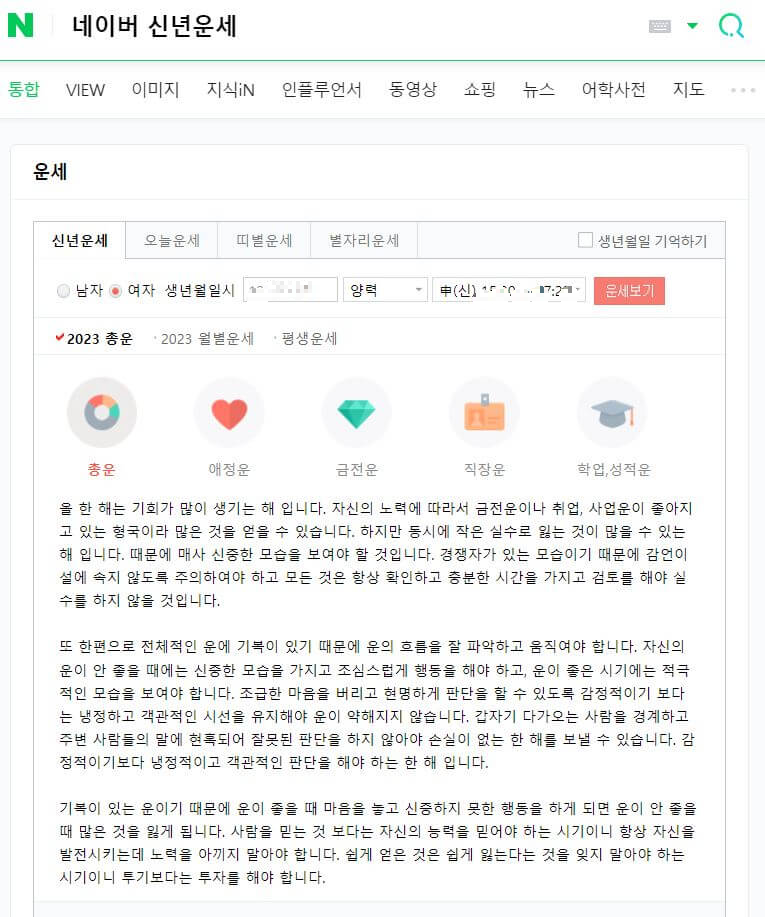 생일 정보 입력하시면 2023년의 운세가 나와요!!!