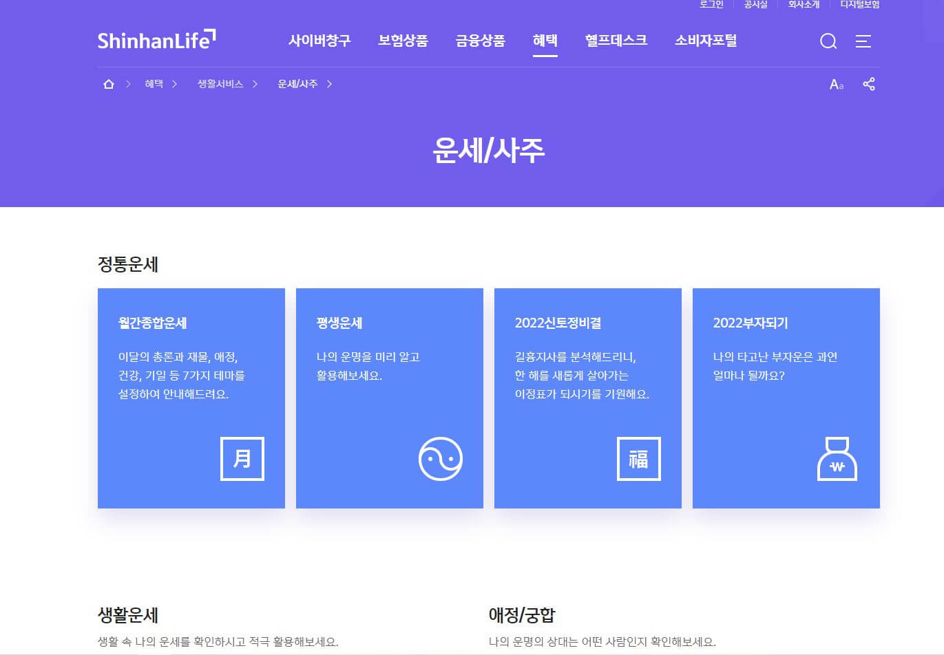 신한라이프 홈페이지로 바로 들어가시면 가입절차 없이 바로 생일 정보 입력해서 다양한 운세를